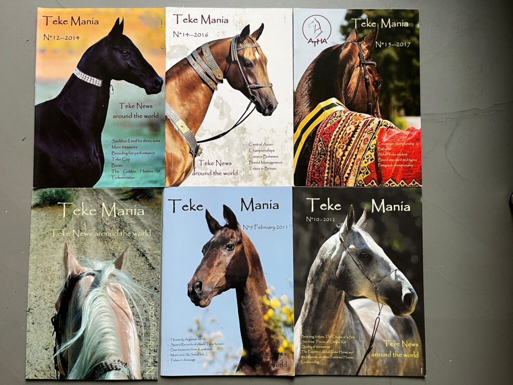 Every year the ATHA, an international Akhal-Teke organization based in Europe, puts together this beautiful collection of articles and content in thick, glossy print. Learn more about the rare Akhal-Teke breed, read insight from people involved with it, and enjoy some beautiful Akhal-Teke photography.