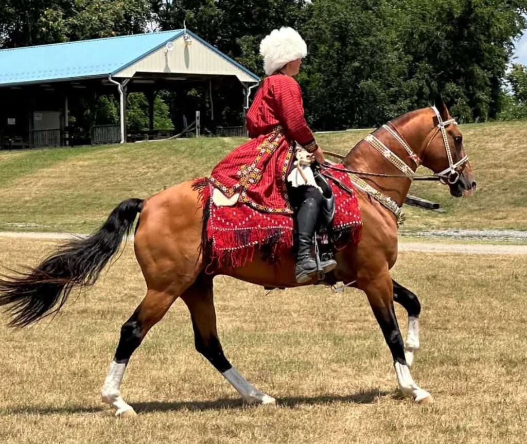 One of the seven Akhal-Tekes planned to be in attendance will be Kerkav’s close relative: accomplished dressage and eventing Breyer portrait horse, Adamek!
