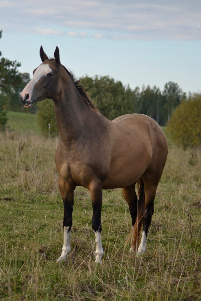 This powerful mare is really special and any program would be lucky to have her. Faza is has been an excellent broodmare with good type, great big movements, and lovely disposition. She has lots of groundwork (loose and on rope) and has been lightly ridden even out on forest trails. She is easy to ride with naturally very forward gaits. She is the dam of our two fabulous fillies (buckskin Farida EST by Mudjahid and Kiza EST by Kizil Yulduz, imported to us in the USA) and is currently in foal to Kizil Yulduz again, due in mid-June 2026.