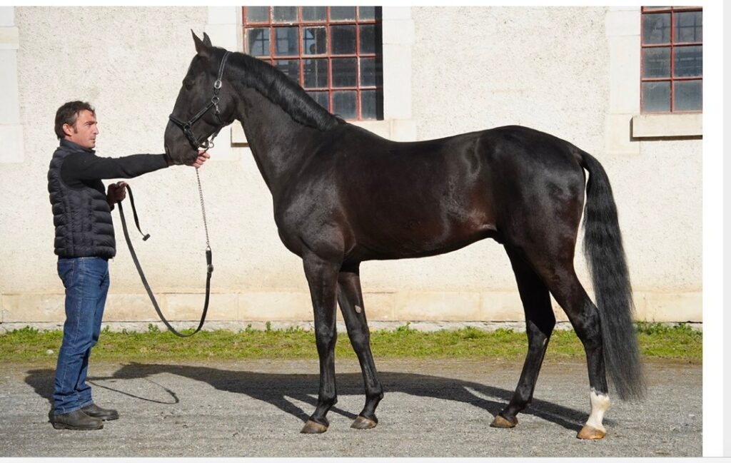 Aydogdy debuted his career last fall, winning double bronze dressage medals at the 2025 European Championships where we had the pleasure of meeting him in person. This year, Aydogdy became the first Akhal-Teke stallion accepted to the renowned Haras de Gelos, a national stud of France established in 1808 by Napoleon Bonaparte! There he will continue his development with the added guidance of Catherine de Lartigue. He was presented at Gelos’ 2026 opening day in the “courtyard of the greats” alongside prestigious Arabians, Thoroughbreds, and Anglo-Arabians–becoming a stallion to watch.