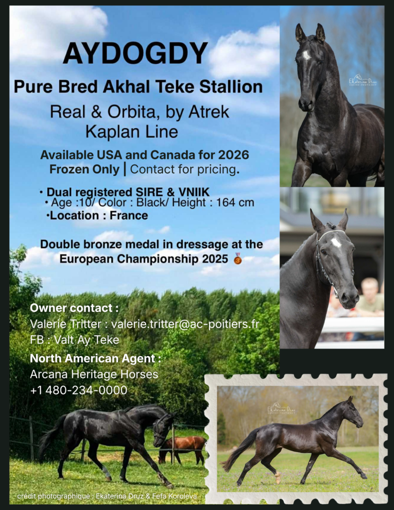 An esteemed addition to the 2026 stallion line-up, we are honored to partner with Valt Ay Teke to represent Akhal-Teke Aydogdy (Real x Orbita, Kaplan sire line, Ovgan dam line) for North America! ![]()