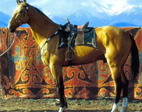 The handsome Gaukhar 4, a maternal great grandsire of our Akhal-Tekes Kerkav and Algushbai. Gaukhar 4 was born