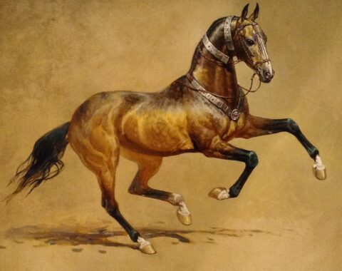 A “Turkish Horse” of the Ottoman Empire in a 16-century illustration from the depictions and documentations of German farrier, spur, and bit maker: Hans Kreutzberger. This illustration is a